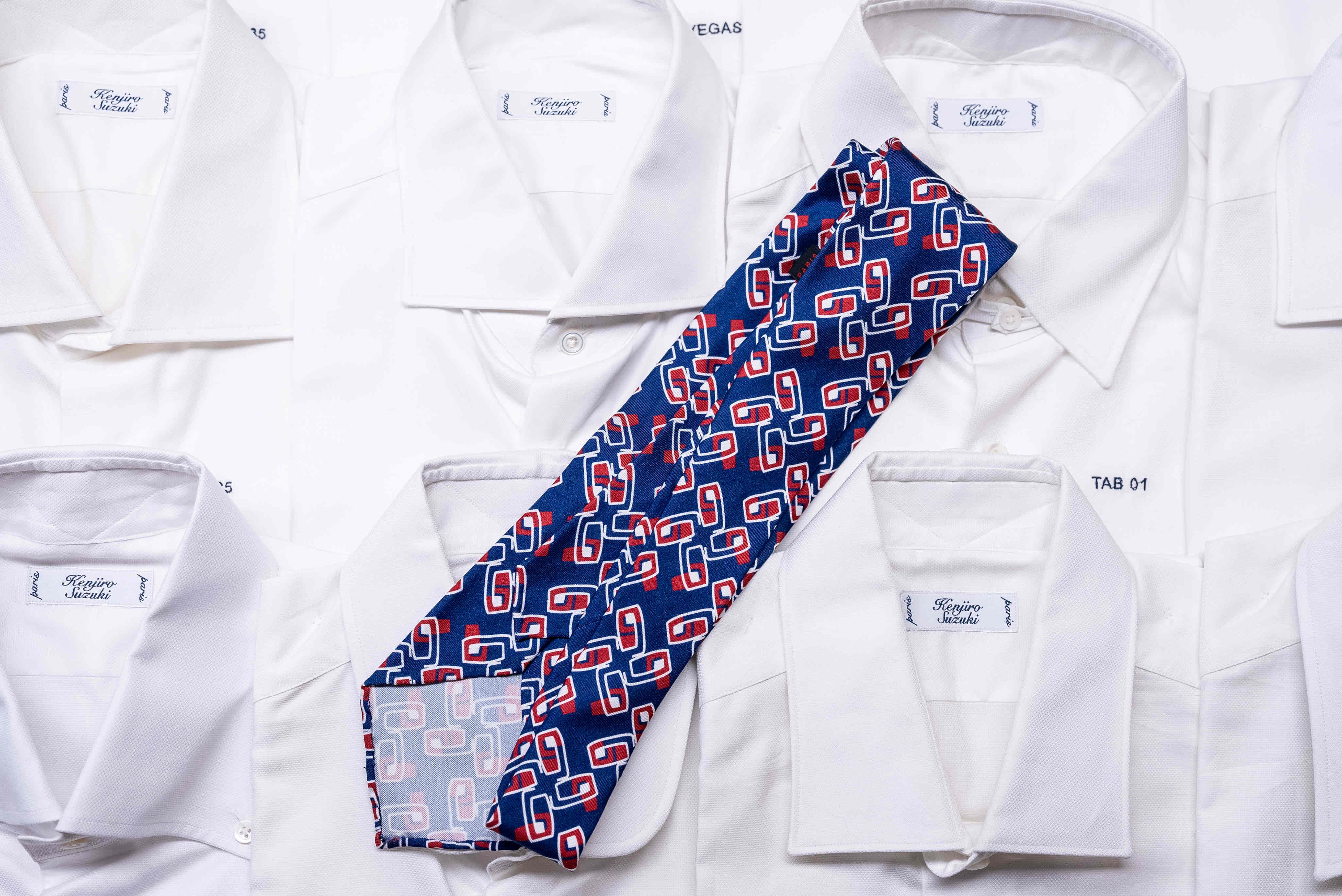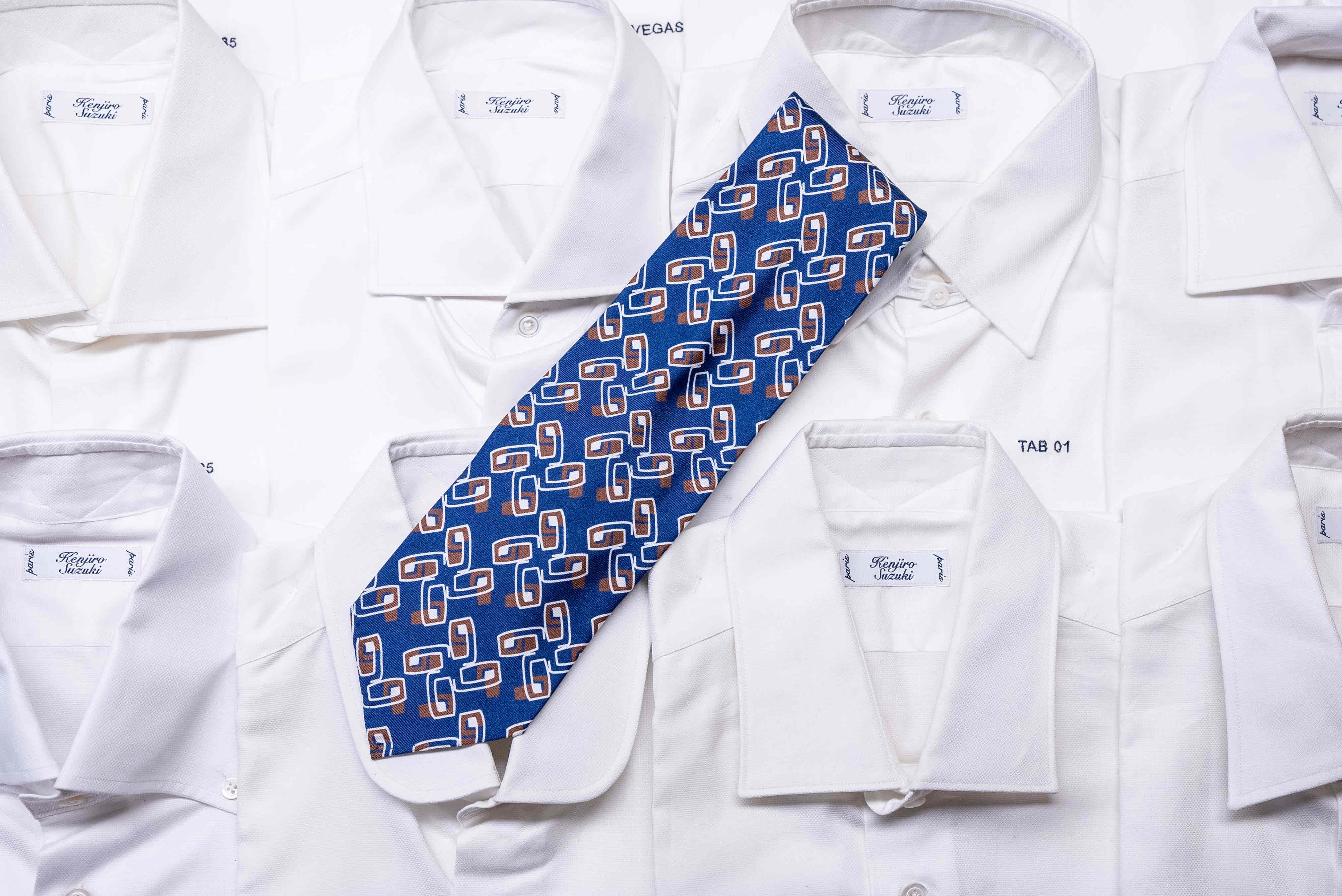 シンプルでありながらも独特な柄が、ネクタイにエレガントな印象を与えます。
