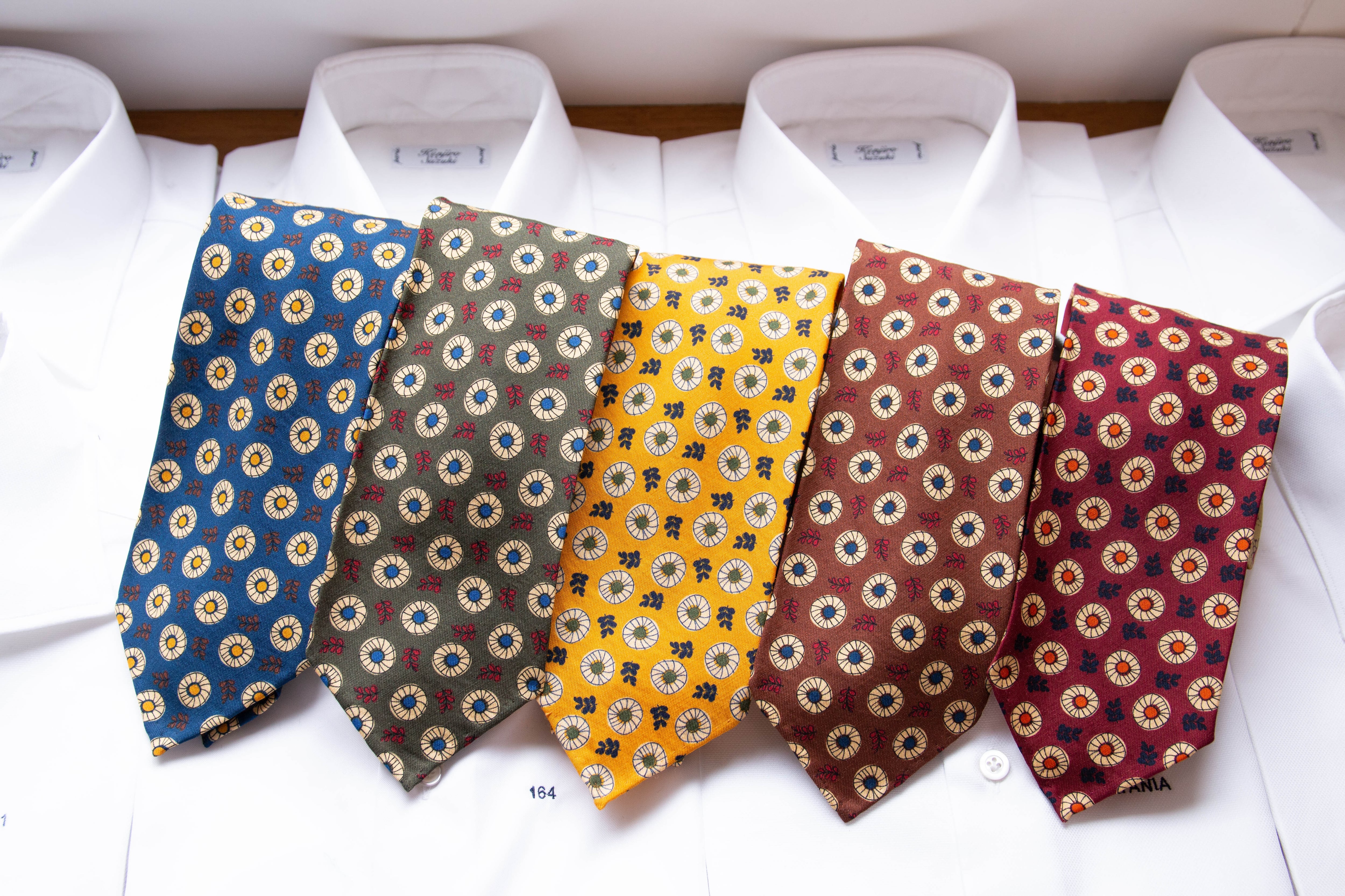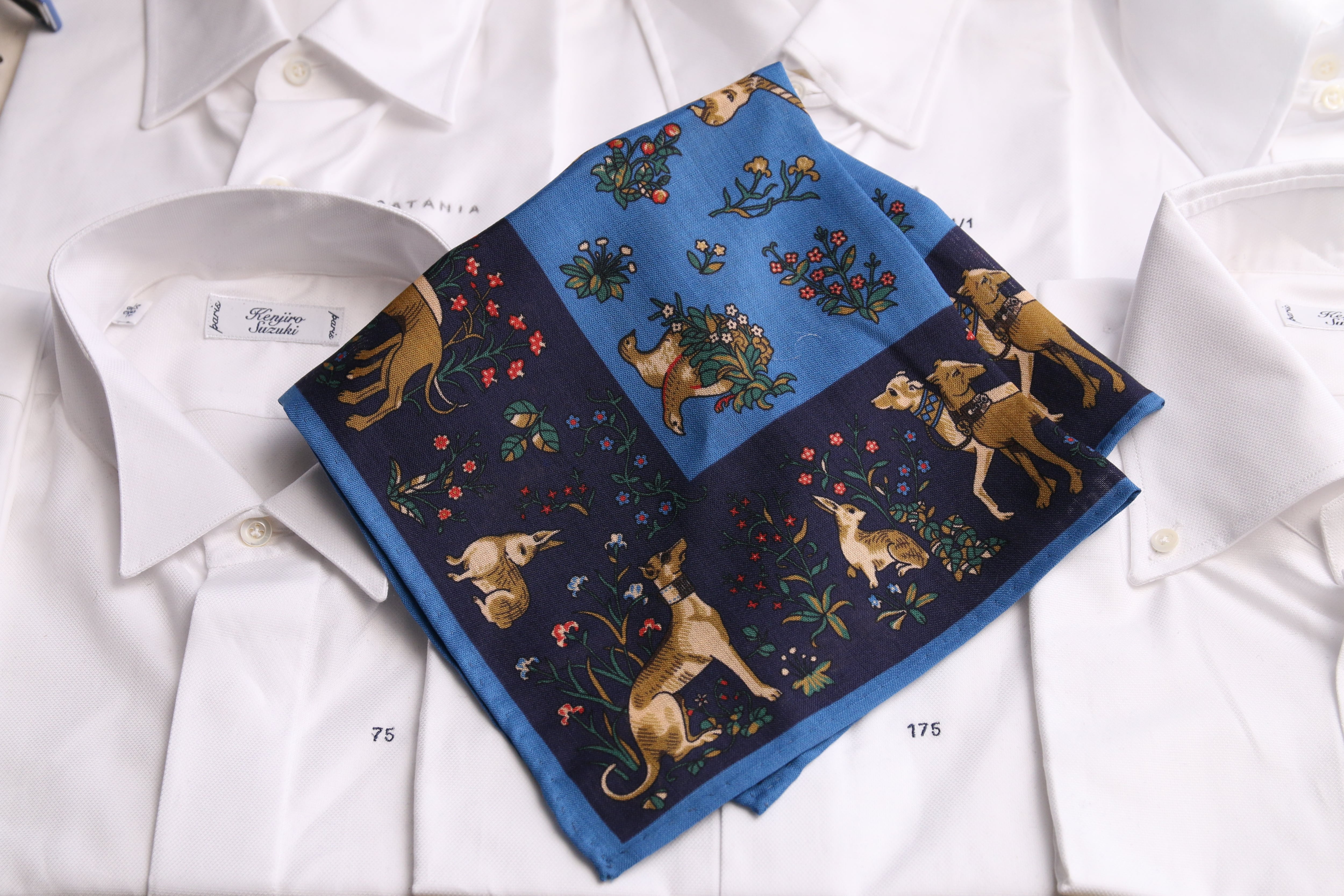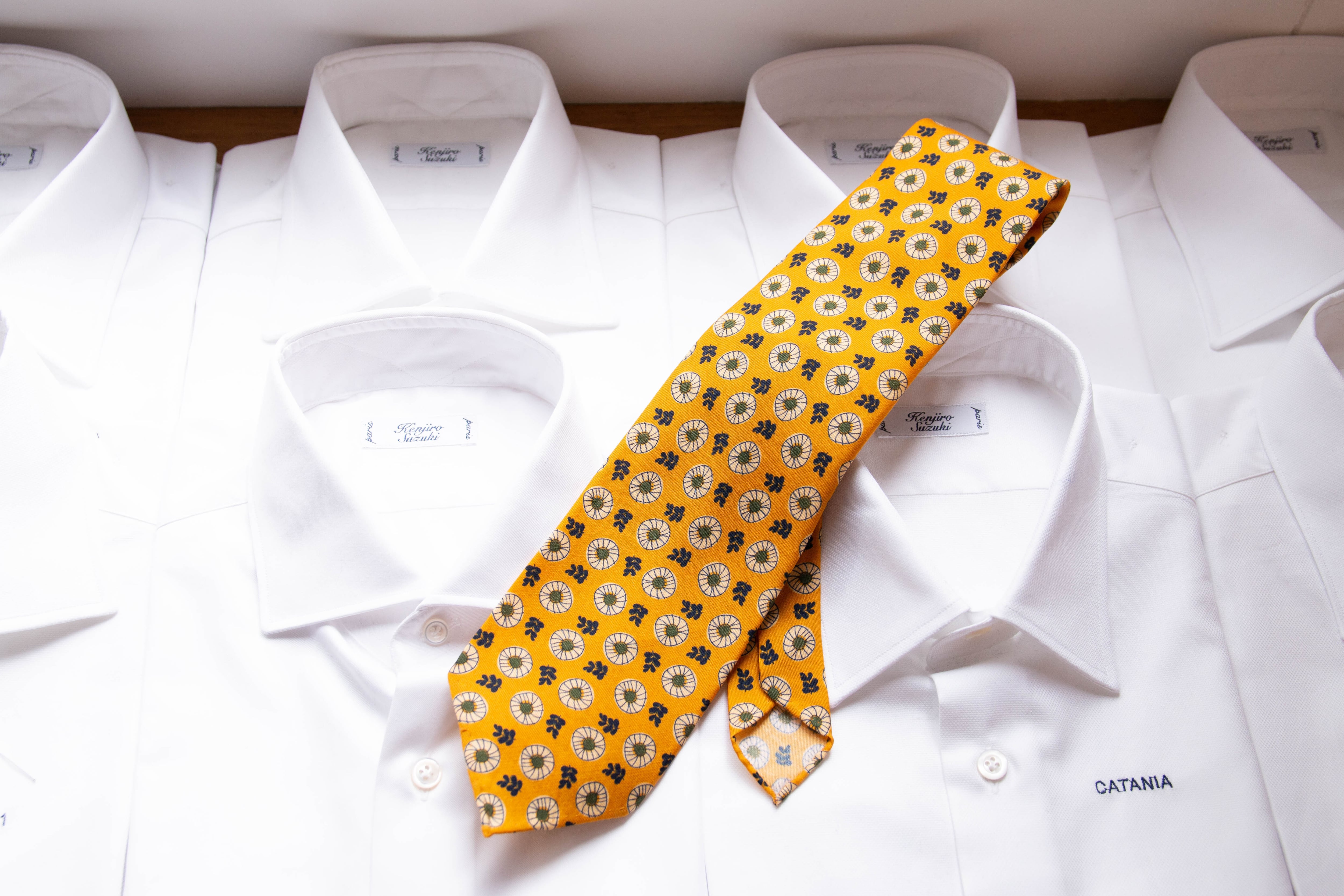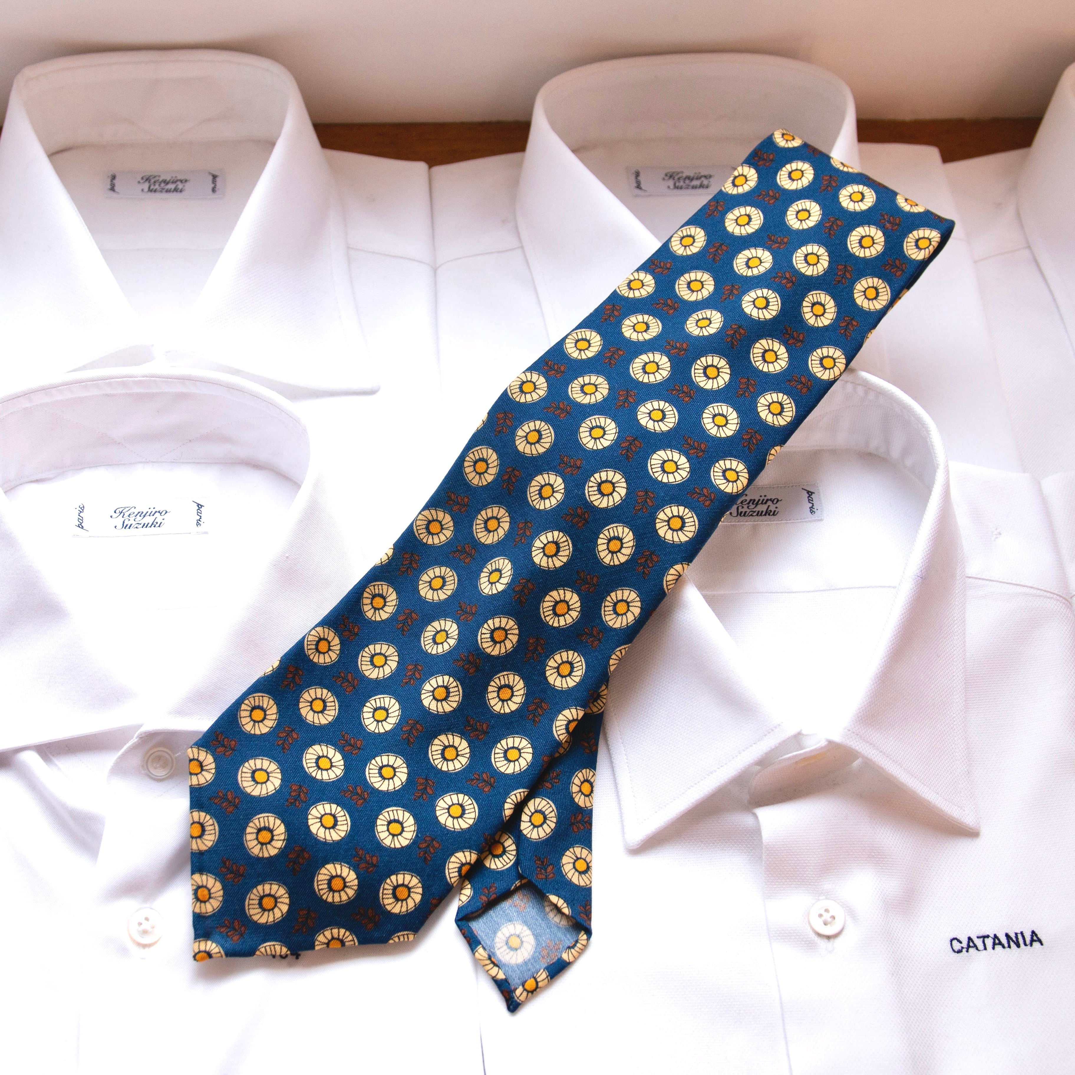ネクタイと言えば一番種類が多いのはジャガード織りになりますが、KENJIRO SUZUKI Paris ではプリントタイを多く取り揃えております。織りで柄を表現するジャガードタイに対して、プリントタイは細かい柄や曲線を繊細に表現できるのが特徴です。