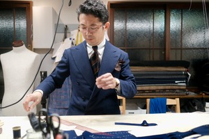 ※ネクタイはバイアス裁ち(伸びやすい斜めの部分)で生地をカットして作っています。また職人が一本一本手縫いで作っておりますので、長さに個体差があります。ご了承ください。