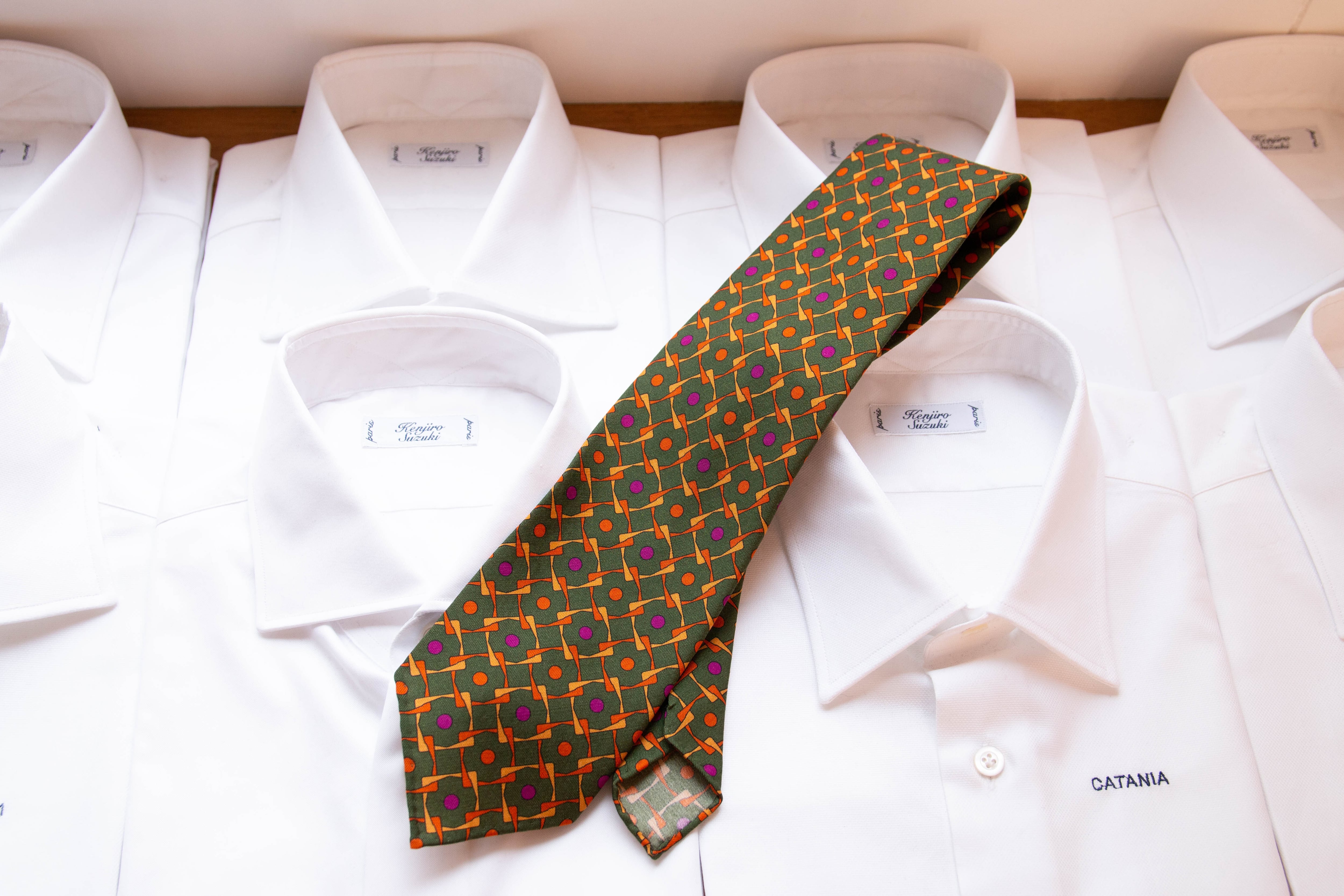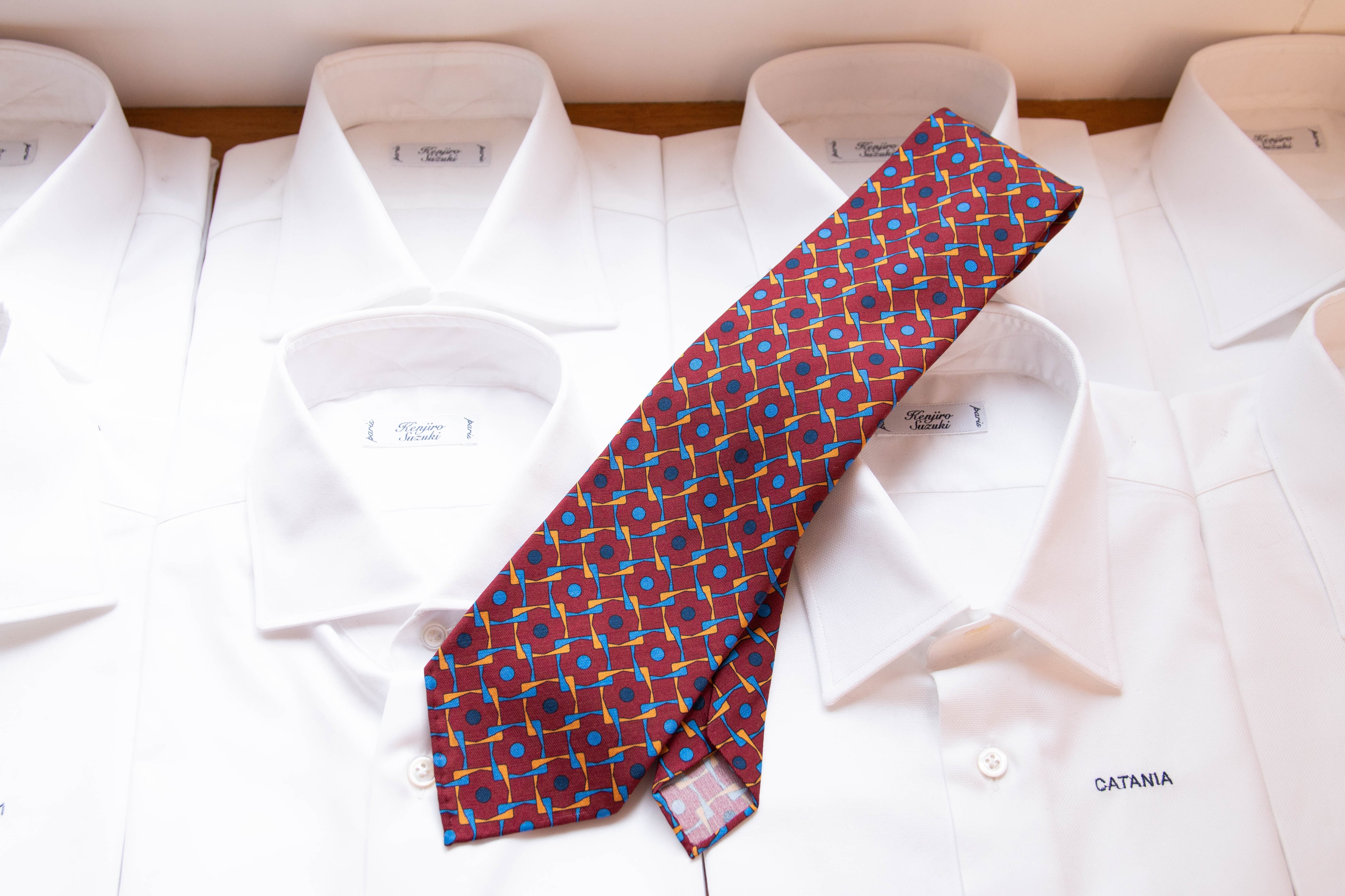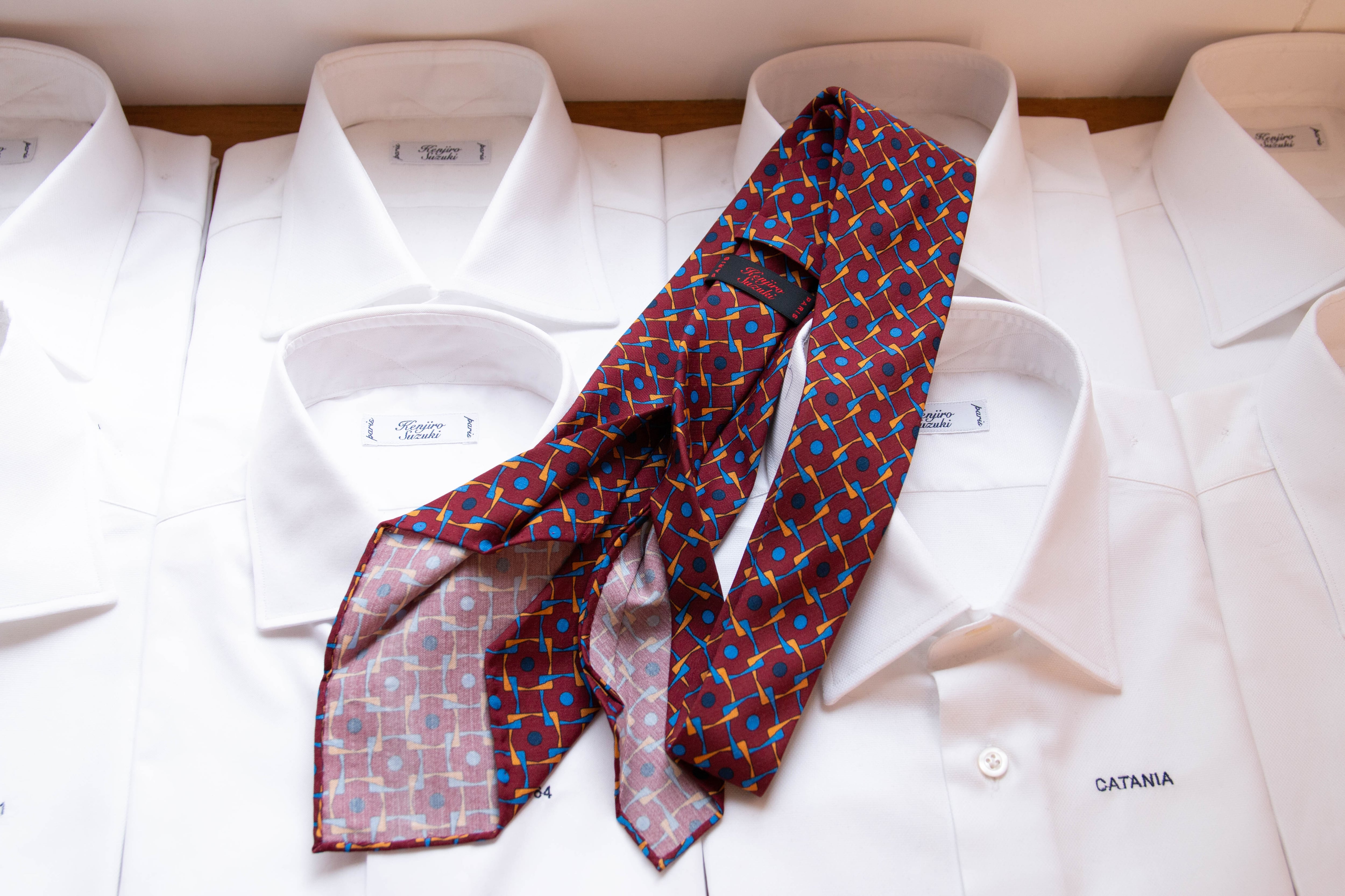 ネクタイと言えば一番種類が多いのはジャガード織りになりますが、KENJIRO SUZUKI Paris ではプリントタイを多く取り揃えております。織りで柄を表現するジャガードタイに対して、プリントタイは細かい柄や曲線を繊細に表現できるのが特徴です。