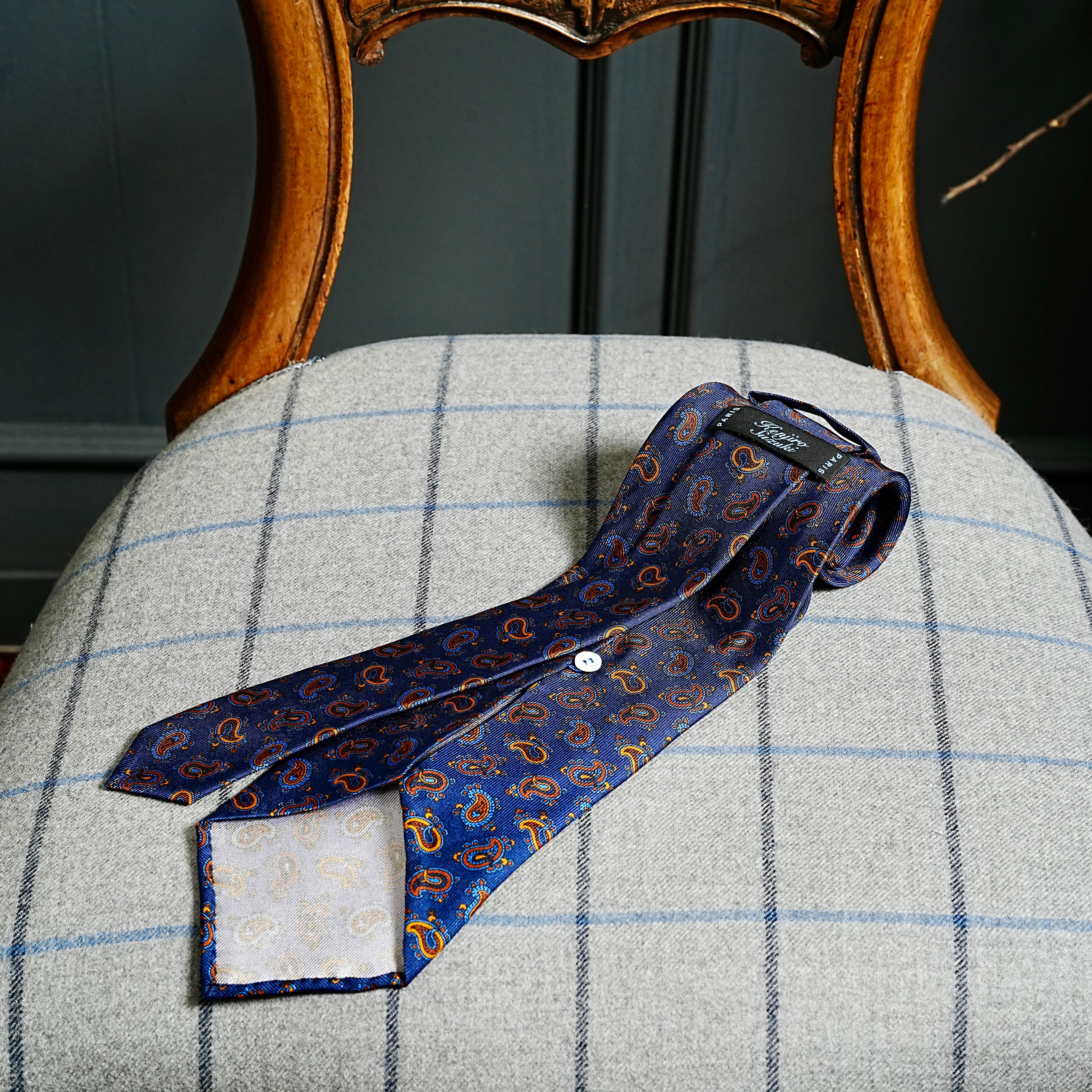 KENJIRO SUZUKI Paris ties are lighter and more supple than conventional jacquard ties, crafted in an unlined five-fold construction. An ultra-thin interlining and entirely hand-sewn finish deliver exceptional comfort.