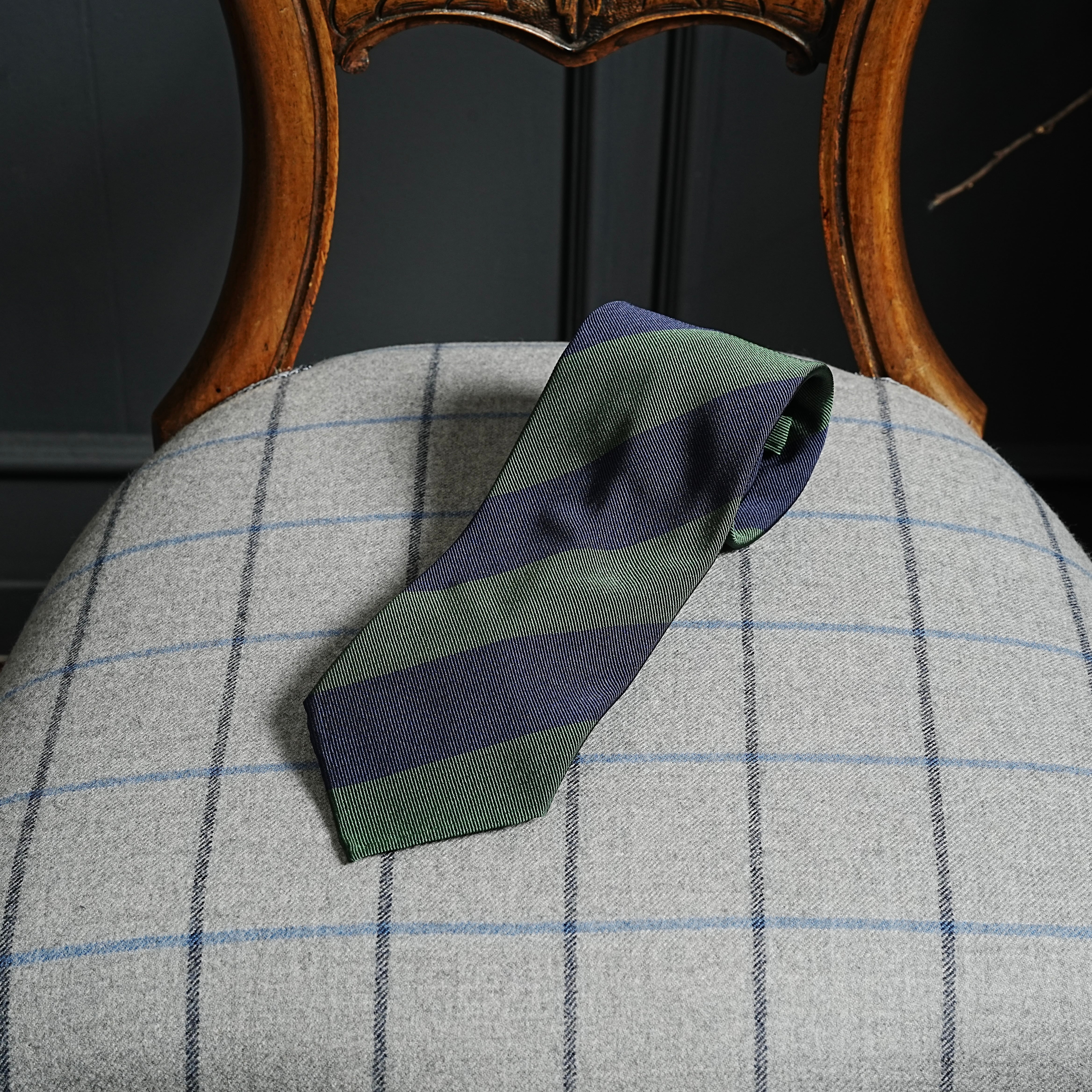 グリーン×ネイビーカラーのレジメンタルタイをご紹介します。