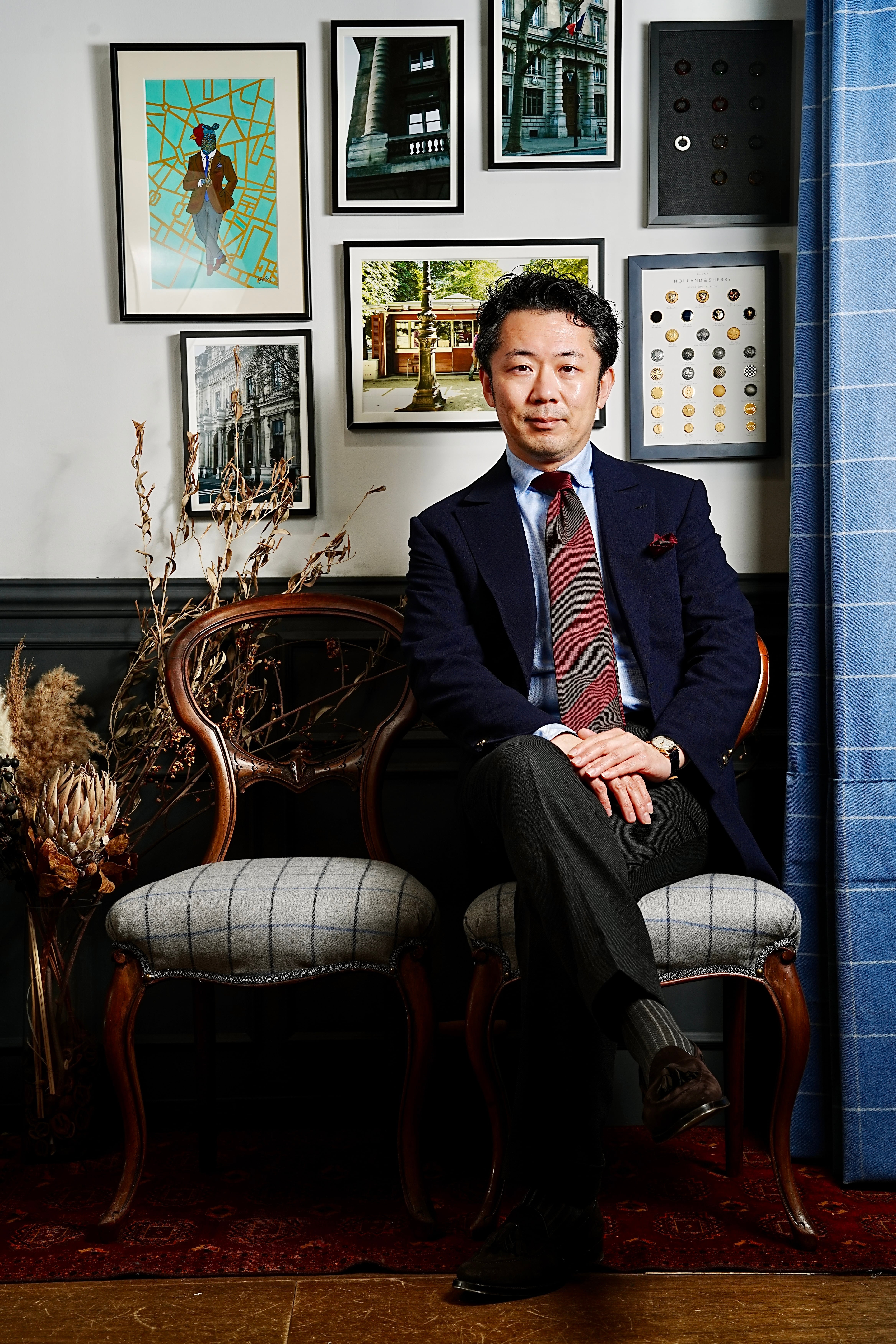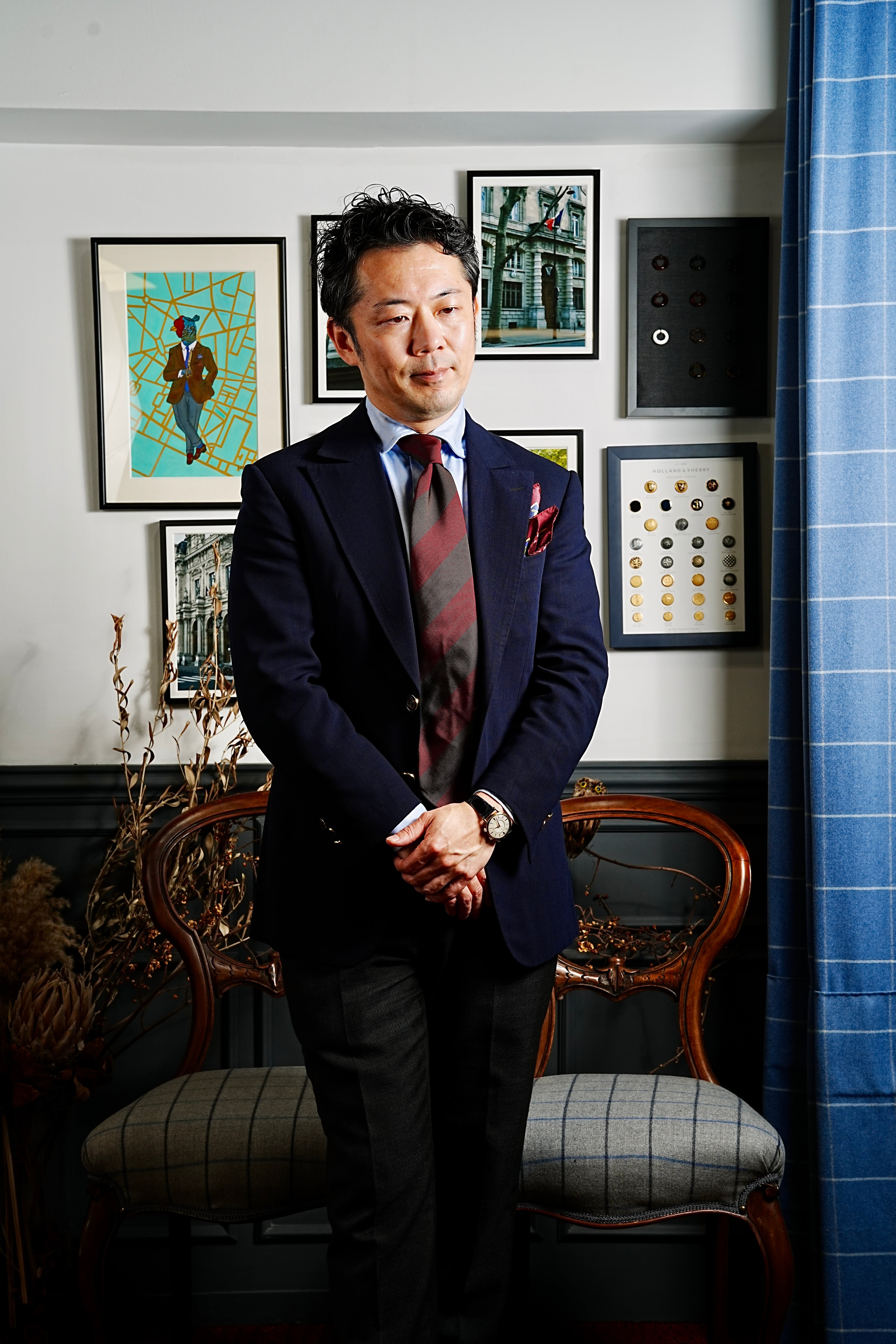 Suit: KENJIRO SUZUKI sur mesure: “Tonik” wool 70% and mohair 30%